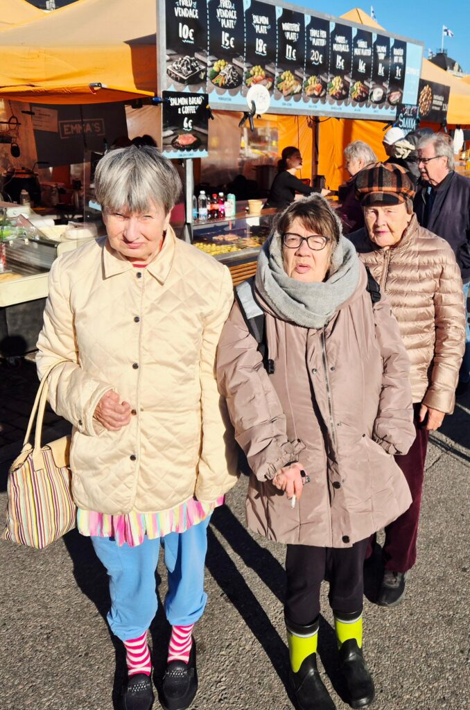 Asukastoimikunnan palaverissa päätettiin myös, että lähdetään yhdessä Silakkamarkkinoille. Se retki toteutettiin 10. lokakuuta. Markkinoilla aurinko paistoi ja nähtiin upeita, vanhoja purjelaivoja. Talo tarjosi maistiaisia silakoista ja possumunkkikahvit. Asukkaat sanoivat, että ”täällä on niin ihanaa, olen ollut markkinoilla viimeksi joskus kolmekymmentä vuotta sitten”. Kuvat kertovat loput, tyytyväisiä ilmeitä ja hyvää mieltä riitti paljon. Kiitos myös vastaavalle ohjaajalle Samille, että olit mukana reissussa.